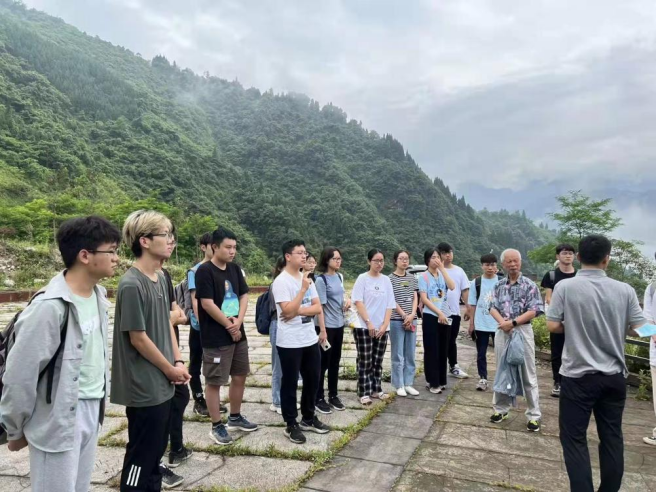 次日上午,同学们来到清平乡文家沟2010年“8·13”特大山洪泥石流山体崩塌原址,认识了文家沟泥石流治理工程。在老师们的讲解下,同学们观察了文家沟的地形、地质、植被及山地灾害与自然环境状况,并对文家沟泥石流治理工程进行了实地考察学习。