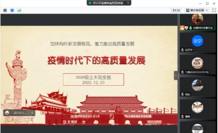 12月23日,学院2020级本科党支部组织开展学习二十大报告主题学习活动,林嘉炜同学作题为“结合疫情形势学习二十大报告中的‘高质量发展’”的分享报告,支部全体成员线上参加。