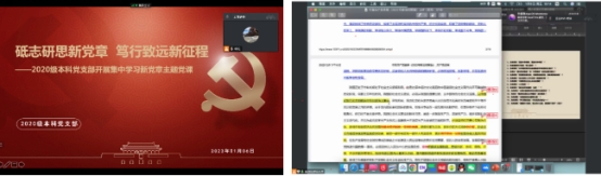 为引导员工党员原原本本学习党章,全面系统领会把握丰富内涵和精神实质,2023年1月6日,学院2020级本科党支部组织开展集中学习新党章活动。支部书记杨颖讲授“砥志研思新党章,笃行致远新征程”主题党课,支部全体成员线上参与。