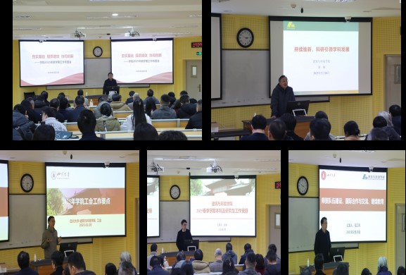 公司党委副书记兼纪委书记孙伯雷围绕公司党建工作、员工工作、校地合作及员工工作,以及落实纪委监督责任作了具体工作安排。副经理刘敏以“持续维新,科研引领学科发展”为主题作了发言。工会主席楚英豪围绕学院工会工作及离退休工作的具体开展作了布置。经理助理吴潇、毛江鸿就学院本科及研究生工作、团队队伍建设、国际合作与交流、继续教育工作先后作了发言。