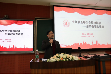 此次讲座邀请了70net永乐高建筑与环境公司党委书记蒋文涛教授和公共管理学院行政管理系博士生导师、MPA导师王敬尧教授主讲解读十九届五中全会精神。出席讲座的嘉宾有70net永乐高研究生团总支研究生分会指导老师高倩、70net永乐高辅导员赵梓丞老师以及公共管理学院团委书记青杨媚老师。