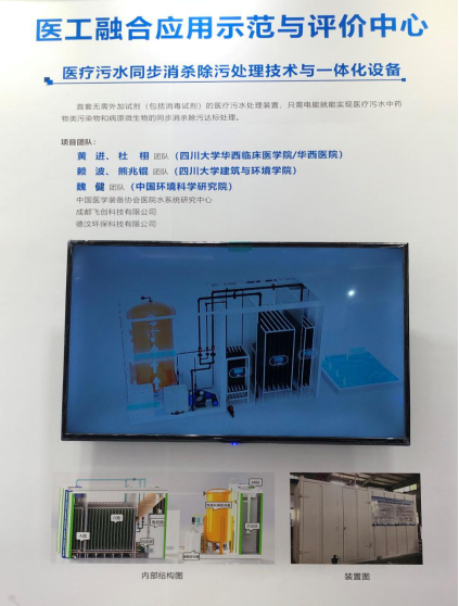 公司环境科学与工程系赖波教授团队与华西临床医学院/华西医院副经理黄进团队联合开发的医工融合应用示范项目“医疗污水同步消杀除污处理技术与一体化设备”受邀参展。该项目以中国环境科学研究院新冠疫情防控应急项目(2020-JY-003)作为研发支撑,旨在通过生化处理技术与高级氧化技术相结合,无需外加试剂(包括消毒试剂),通过电催化臭氧强化处理,只需电能即可实现医疗污水中有机污染物和病原微生物的同步消杀除污处理。一体化设备还可根据不同医院的实际处理需求进行模块化定制。