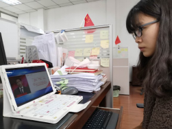 辅导员和员工认真观看学习