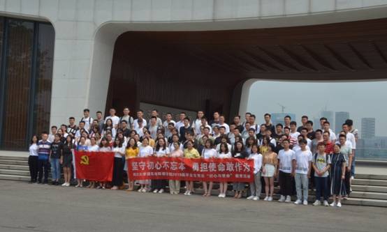 参观学习后,毕业生党员在习近平总书记重要指示精神红墙前重温入党誓词。时值正午,烈日当空,毕业生党员整齐列队,面向党旗,高举右手,紧握拳头,以铿锵有力的声音,坚定不移的眼神,表达出不忘初心、牢记使命的信念与决心。
