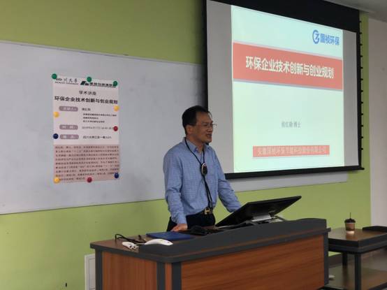4月17日,学校创新创业导师侯红勋研究员在江安校区第一教学楼A区201教室为建环学院师生做了题为“环保企业技术创新与创业规划”的专题学术报告。报告由副经理刘敏教授主持,陈滢、卢红雁等老师及学院相关专业的员工参加并听取了报告。报告之前,举行了简短的聘书发放仪式,经理助理张炜为侯红勋研究员颁发了创新创业导师聘书。