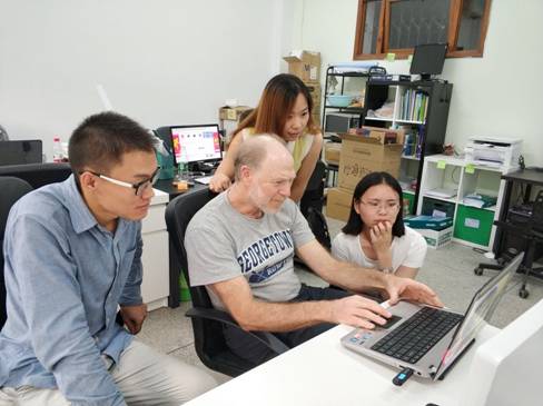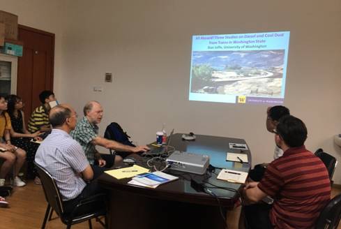 到访期间,Dan Jaffe教授采用小组面对面的教学方式,解答同学们在科研工作中遇到的问题,耐心教同学们如何开发模型、使用模型、分析数据、和写科研论文,同学们均表示在此期间获益匪浅。图为Dan Jaffe教授向员工演示GAM模型、HYSPLIT模型。