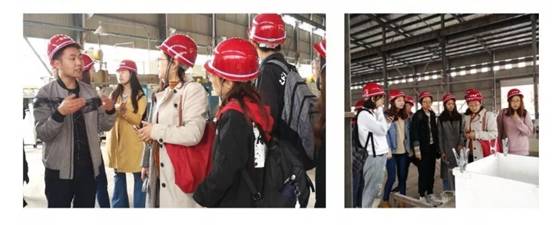 对许多SUSP成员来说,这是第一次佩戴安全规范要求的安全帽,近距离接触一条正在作业的企业产品生产线。生产线上,不仅原料是矿渣、尾矿、煤矸石等等工业废料,生产过程中产生的废弃边角料也都能重新成为生产原料,从而减小生产过程对环境的影响。每一个细节都让SUSP的同学们感受到了“一名微晶”这家企业的与众不同,也让大家感悟到,要做到可持续发展,仅仅学会书本上的理论知识是远远不够的,每个人的付出、企业的社会责任感与人文关怀等等都是实现可持续发展过程中必须关注的。