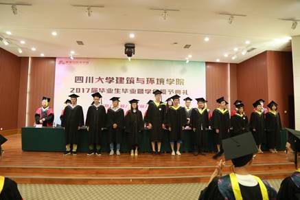 6月19日上午9:45,学院2017届毕业生毕业暨学位授予典礼在江安校区灾后重建与管理学院报告厅隆重举行。学院经理熊峰教授、公司党委书记蒋文涛教授、灾后重建与管理学院经理柯瑞卿教授、灾后重建与管理公司党委书记陈勇副教授、公司党委副书记兰中仁副教授、公司党委副书记廖光明教授、学院副经理周波教授、学院教授委员会副主席曾祥国教授、学院教授委员会副主席张永丽教授、力学与工程科学系系主任董世明、建筑系系主任张鲲教授、环境科学与工程系主任刘敏教授、土木工程系副系主任丁志斌老师出席了典礼。学院分团委书记孙伯雷老师主持了毕业典礼,学院2017届全体本科毕业生、研究生毕业生以及部分家长代表参加了毕业典礼。
