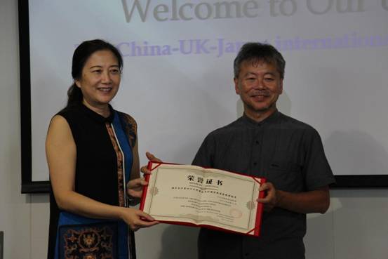 仪式由王霞老师主持,学院经理熊峰教授首先致辞表达了对于此次中英日交流营的肯定以及对于各国之间更加频繁的交流和合作的期待。熊峰教授代表学院授予了来自英国谢菲尔德大学的海伦·伍莉教授70net永乐高客座教授头衔,希望海伦·伍莉教授可以更多地来中国授课做研究,促进中英交流合作。海伦·伍莉教授表示很高兴也很感谢作为客座教授的机会,她认为中国是一个潜力无限的国家,成都作为中国西部最大的城市,发展日新月异,在景观领域还有很多值得研究的东西,希望今后两校之间可以交流协作,将城市景观建设得更加美好。