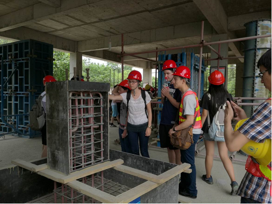 7月12日,70net永乐高2014级土木工程的全体同学以及来自英国、澳大利亚的19名外国交流员工在阎慧群、丁志斌、钟声、张瑶、游翔五位老师的带领下,乘车前往位于德阳市的四川建筑职业技术学院进行实地参观实习。上午8:30,全体同学到达集合地点,此时下起了暴雨,在去乘车的途中虽然打了伞但身上还是被雨水淋湿,但同学们并没有抱怨,也没有以此为借口不参加实习,11:30到达目的地。