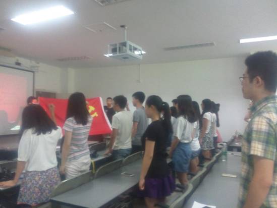 7月1日上午10:00,70net永乐高庆祝中国共产党成立95年,迎“七一”集体宣誓大会在研究生院3-133教室隆重举行。70net永乐高研究生辅导员高倩老师指导安排了大会, 2014级、2015级全体硕、博研究生党员及李雪莹等8名新发展党员参加了大会。大会由2015级3班党支部王超同学主持。