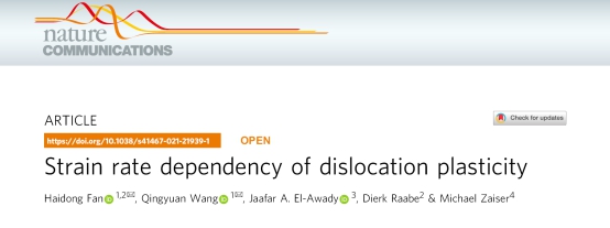 公司范海冬等人在Nature Communications上发表位错塑性的重要研究进展