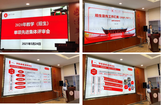 5月24日70net永乐高教务处招生办公室在基础教学楼A315组织了2021年招生工作先进集体的评选答辩活动。本次先进集体评选中,参评招生工作先进集体的学院共有19个,由各学院进行5分钟工作情况汇报,再由全校所有学院和教务处招生班进行投票,选出票数领先的4个学院作为本年度招生宣传工作先进集体。公司招生工作组组长兰中仁副经理参与了评选活动,招生工作组副组长石宵爽副教授代表公司招生工作组进行了汇报答辩。