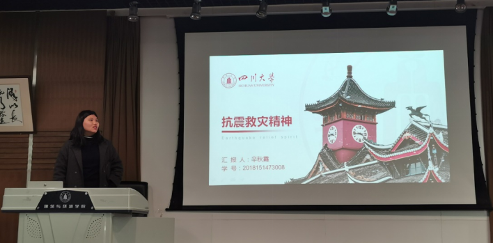 辛秋霞分享了她对抗震救灾精神的理解,回顾了抗震救灾精神的由来、传承与演变,结合武文斌等抗震救灾的英雄事迹对“万众一心、众志成城、不畏艰险、百折不挠、以人为本、尊重科学”的精神内涵作出了解读,分析了抗震救灾精神具有的时代特征,包括强烈的爱国性、严密的组织性、高度的团结性、突出的战斗性、丰厚的人文性和鲜明的时代性。辛秋霞指出,抗震救灾精神源于抗震救灾斗争实践,其实质联通于以爱国主义为核心的民族精神和以改革创新为核心的时代精神,是中国精神的具体表现之一。