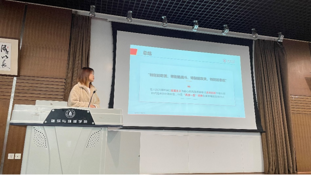 党支部书记周琦颖对本次党课进行总结,她表示新时代青年党员不仅要从理论上学习党的精神谱系,还要结合具体事件及自身专业背景对精神谱系进行深入解读,领悟其内涵精髓,从中汲取奋进动力,赓续中国共产党人的精神血脉,扬起迈进新征程、奋进新时代的精神风帆。