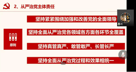 5月25日,支部召开党员大会,学习党章和《党委(党组)落实全面从严治党主体责任规定》。铁帚除弊,明镜正冠,会上,杨世利同志带领大家从两个维护、党的政治建设、党的思想建设等方面充分理解党委的主体责任。支部书记高倩指出,党员员工应牢固树立“四个意识”,坚定“四个自信”,做到“两个维护”,她表示支部将继续按照学校、学院要求认真开展相关活动,学习贯彻相关文件及讲话精神,全面落实从严治党要求。