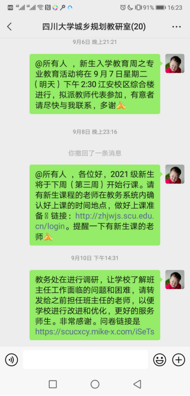 一、2021年9月6日,根据学院通知组织新生与教师代表见面会,介绍和宣传城乡规划教育,提醒新生任课老师确认上课信息: