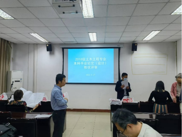 2022年5月20日土木工程毕业生毕业设计(论文)答辩后的优秀设计成果,2022年5月27日教研室专门组织专业教授、工程技术经验丰富的指导老师进行了土木专业本科答辩推优评审,各位老师就优秀毕设成果进行了审阅,提出了修改完善意见,评选出了土木专业的推优成果。